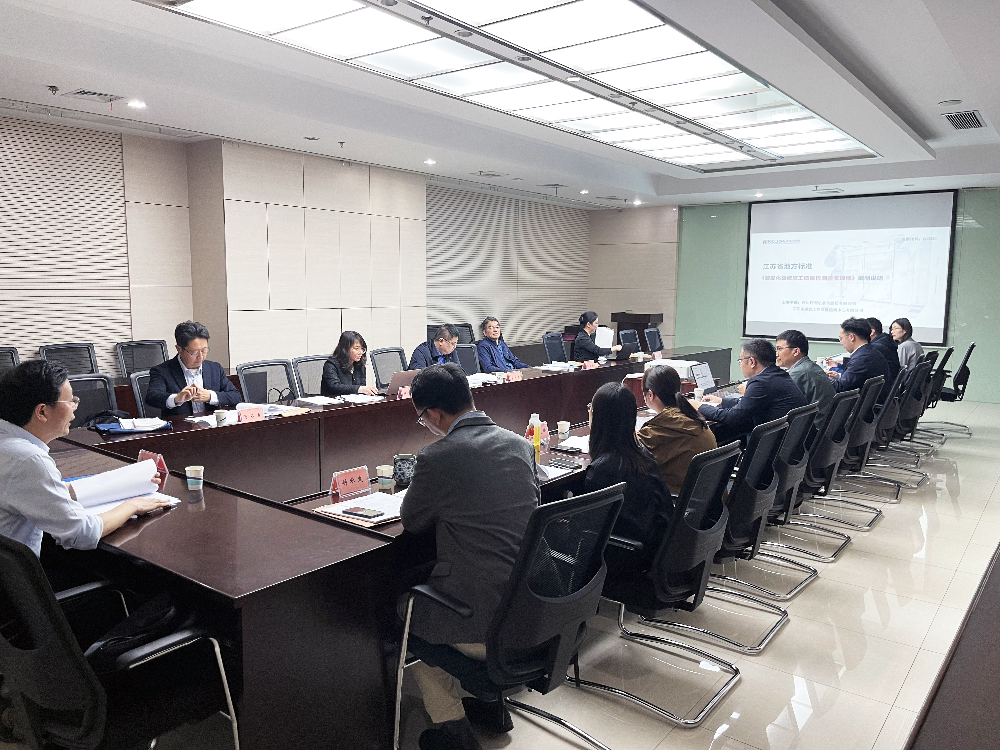 2023年4月21日下午,由蘇州柯利達(dá)裝飾股份有限公司牽頭編制的江蘇省地方標(biāo)準(zhǔn)《裝配化裝修施工質(zhì)量檢測(cè)驗(yàn)收規(guī)程》(以下簡(jiǎn)稱《規(guī)程》)送審稿審查會(huì)在南京順利召開。省住建廳綠色建筑與科技處韋伯軍二級(jí)調(diào)研員、省工程建設(shè)標(biāo)準(zhǔn)站相關(guān)領(lǐng)導(dǎo)、審查專家及編制組成員出席了本次會(huì)議。
